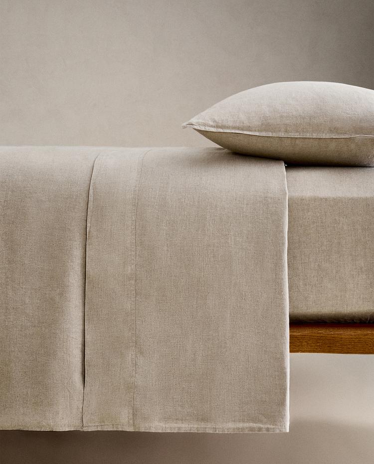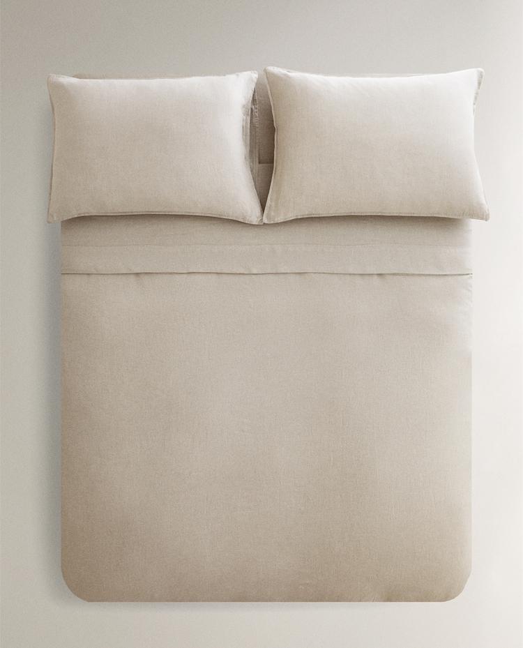 ZARA HOME ОДНОТОННЫЙ ЛЬНЯНОЙ ПОДОДЕЯЛЬНИК, СВЕТО-БЕЖЕВЫЙ