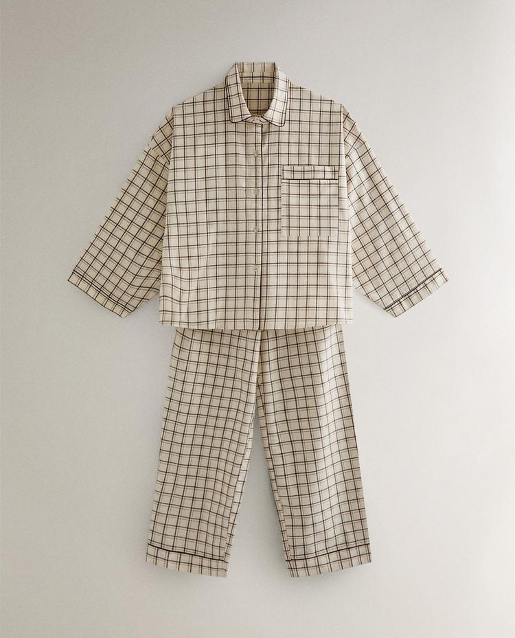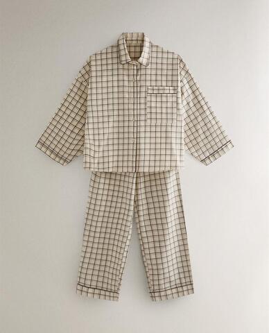 ZARA HOME ПИЖАМА В КЛЕТКУ, ЭКРЮ
