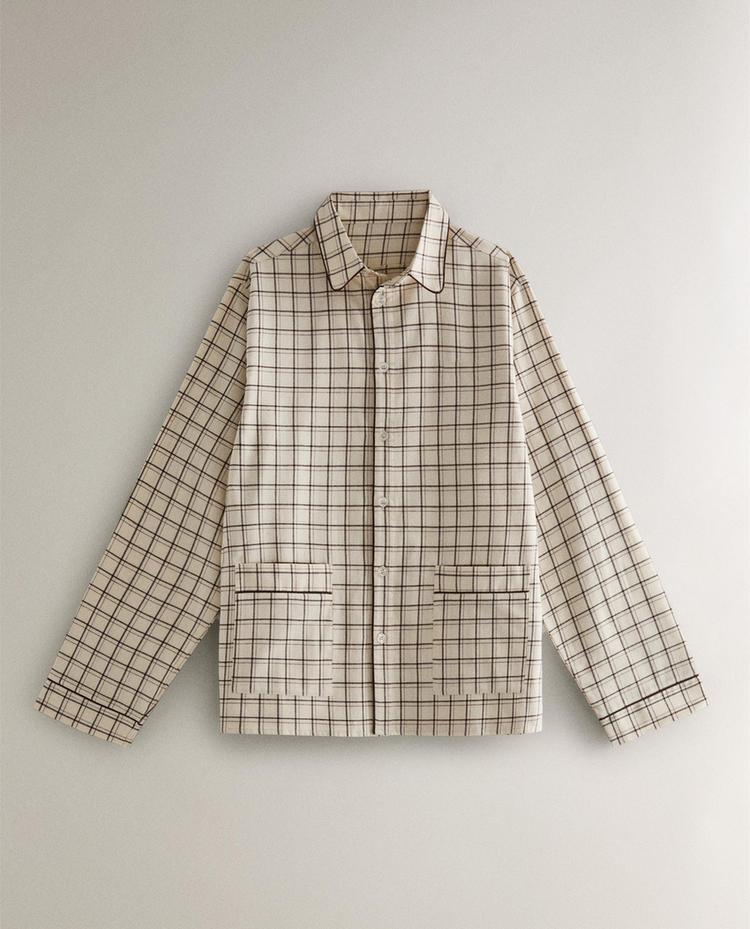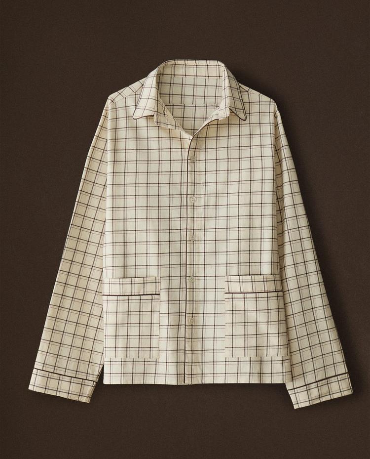 ZARA HOME ПИЖАМА В КЛЕТКУ С КАРМАНАМИ, ЭКРЮ