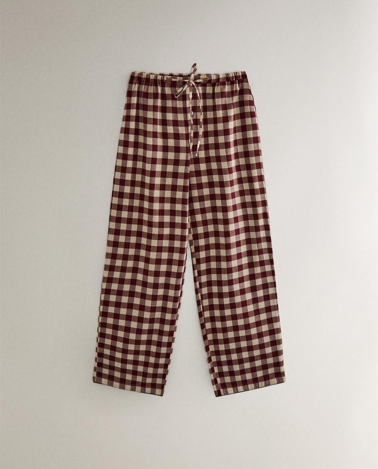 ZARA HOME ПИЖАМНЫЕ БРЮКИ ИЗ ХЛОПКА, БОРДОВЫЙ