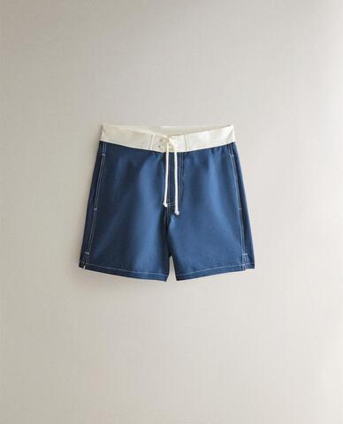 ZARA HOME ПЛАВКИ-БЕРМУДЫ С КОНТРАСТНЫМ ПОЯСОМ, СИНИЙ