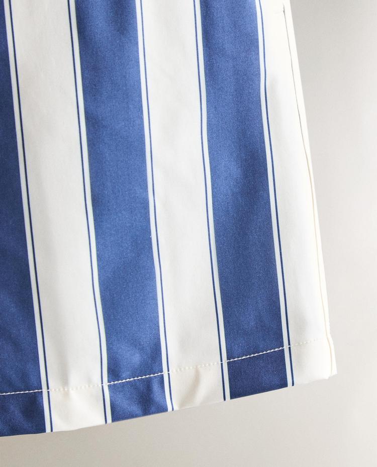 Пляжные шорты в стиле бермуд для мужчин с эластичным поясом, регулируемым шнурком спереди и вертикальными полосами.