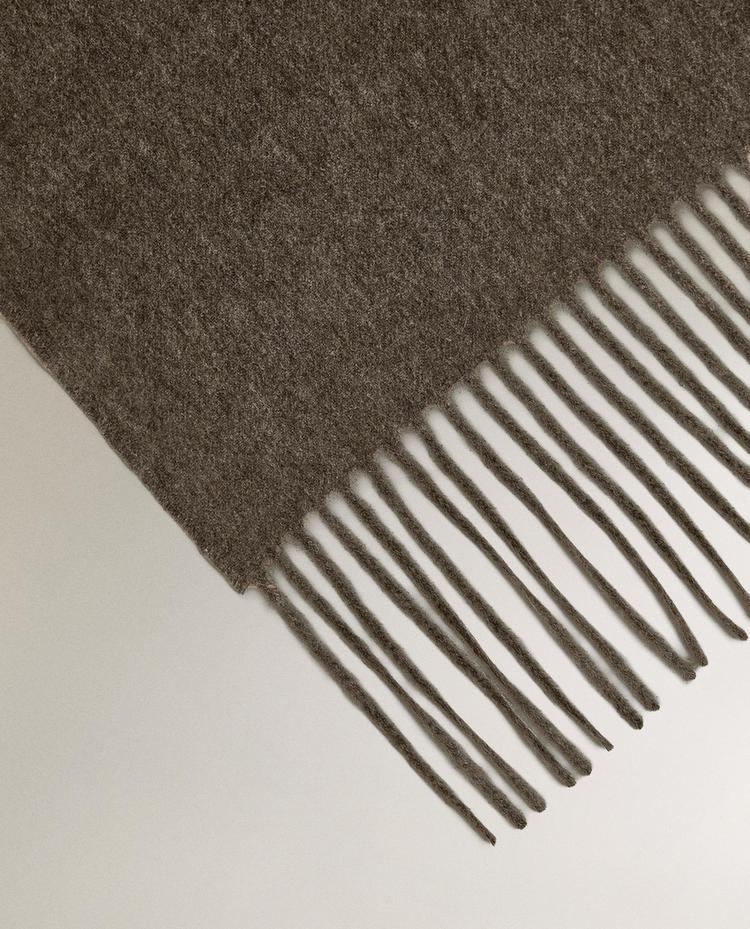 Декоративный однотонный плед из шерсти и кашемира с бахромой.