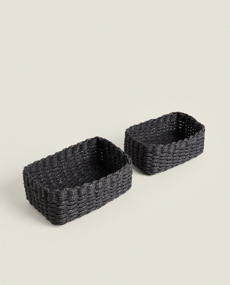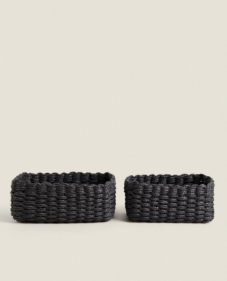 ZARA HOME ПЛЕТЕНАЯ КОРЗИНА, ЧЕРНЫЙ