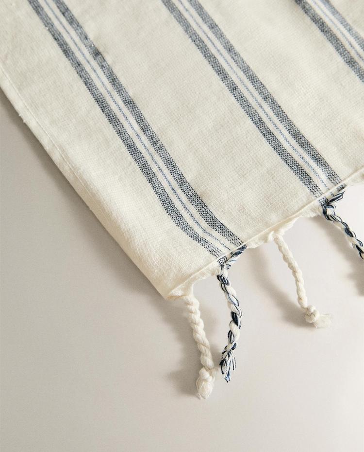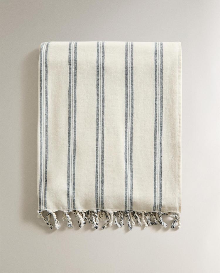 ZARA HOME ПЛЯЖНОЕ ПОЛОТЕНЦЕ ПАРЕО В ПОЛОСКУ, ТЕМНО-СИНИЙ