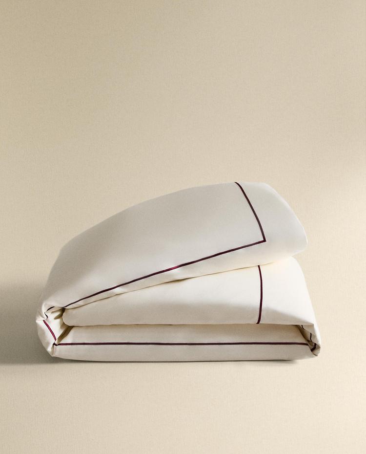ZARA HOME ПОДОДЕЯЛЬНИК ИЗ САТИНА С ОКАНТОВКОЙ, БУРГУНДИ