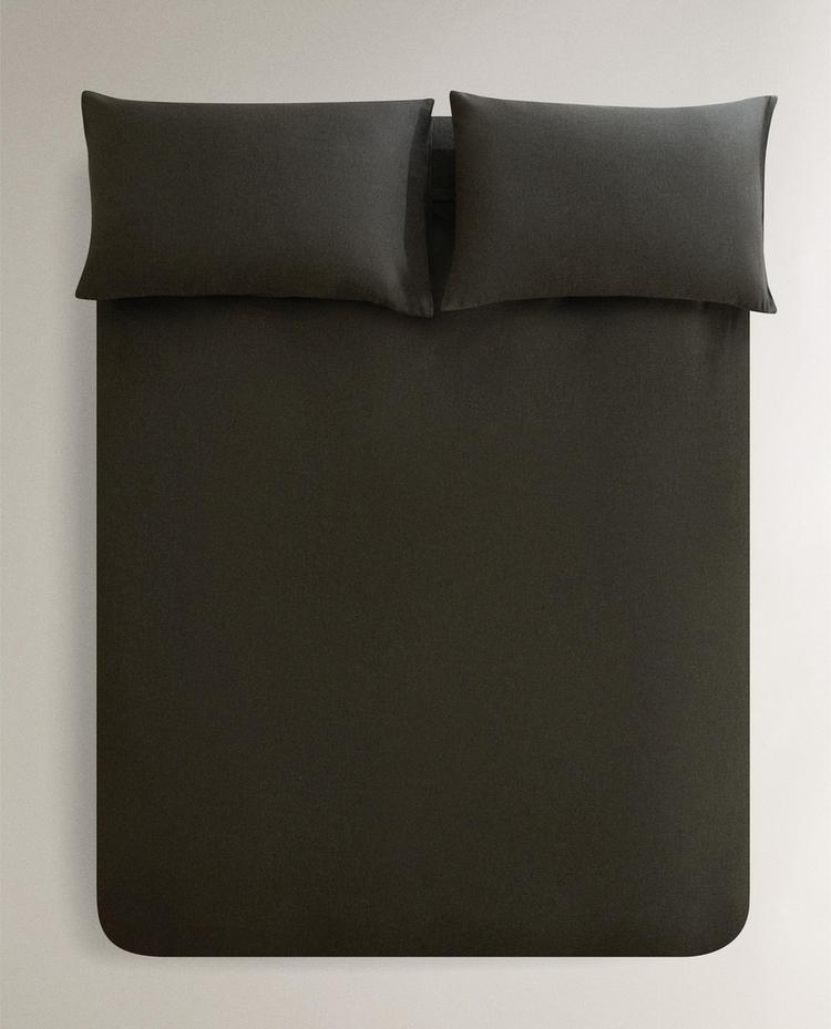 Пододеяльник из хлопка и кашемира с однотонным рисунком.