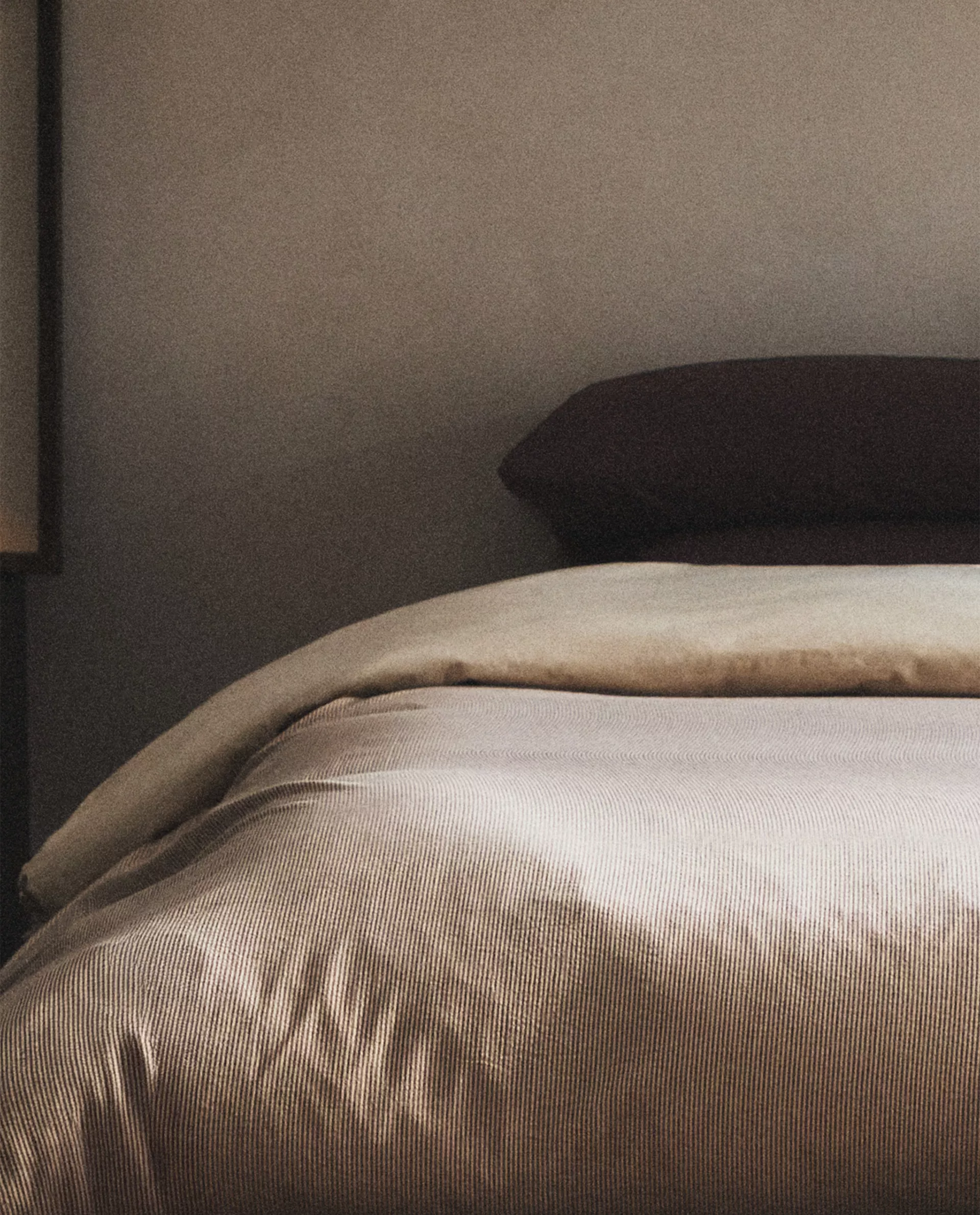 ZARA HOME ПОДОДЕЯЛЬНИК ИЗ ЖАТОГО СИТЦА В ПОЛОСКУ, БЕЖЕВЫЙ