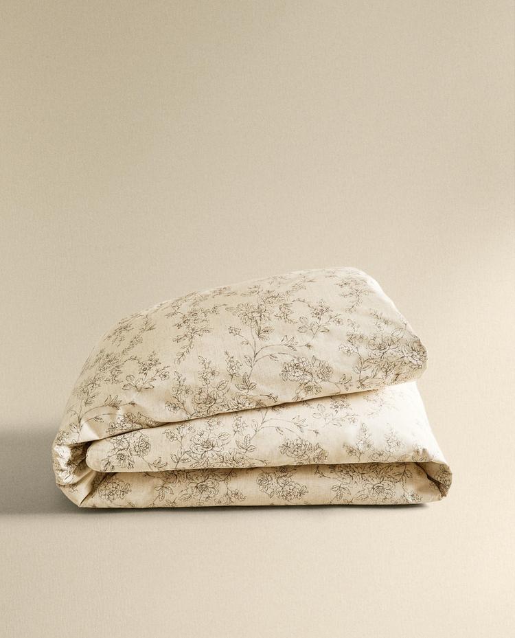 ZARA HOME ПОДОДЕЯЛЬНИК С ЦВЕТОЧНЫМ ПРИНТОМ, БЕЖЕВЫЙ