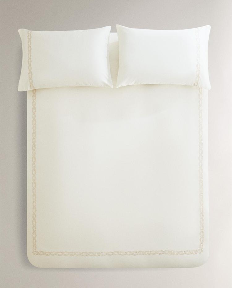 Пододеяльник из хлопкового сатина плотностью 300 нитей с вышитым узором.