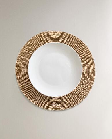Круглая подставка под столовые приборы, из бумажной лозы. Набор из 2 штук.