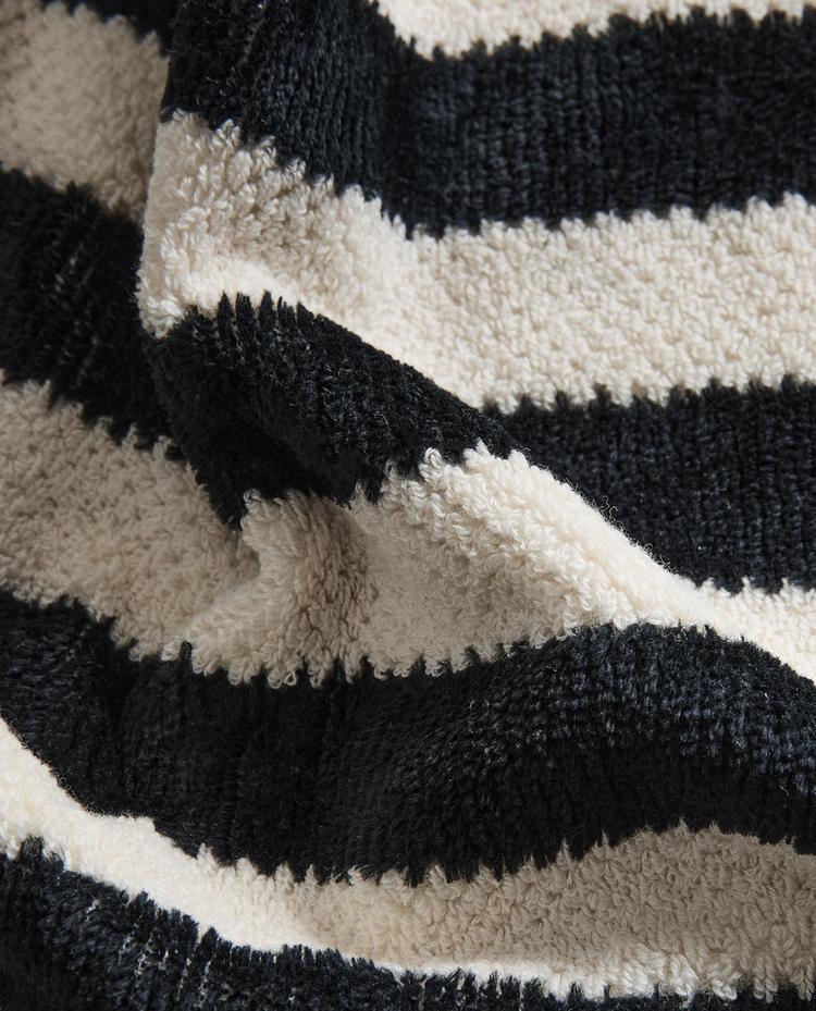 Полотенце для ванной из хлопкового велюра с рельефным узором в полоску.