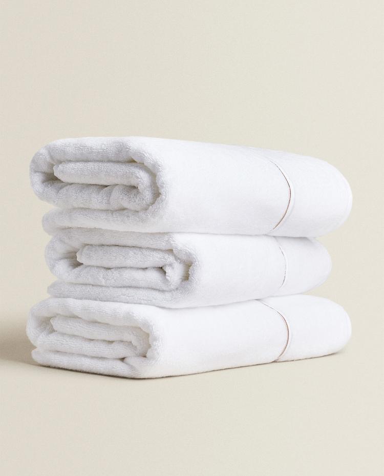ZARA HOME ПОЛОТЕНЦЕ ДЛЯ ВАННОЙ С ВЫШИВКОЙ, БЕЖЕВЫЙ