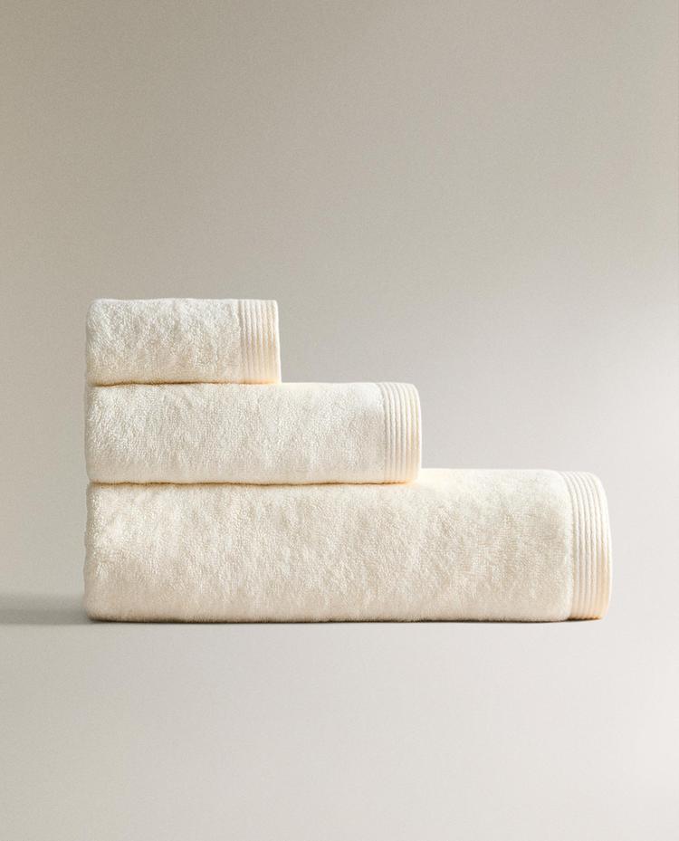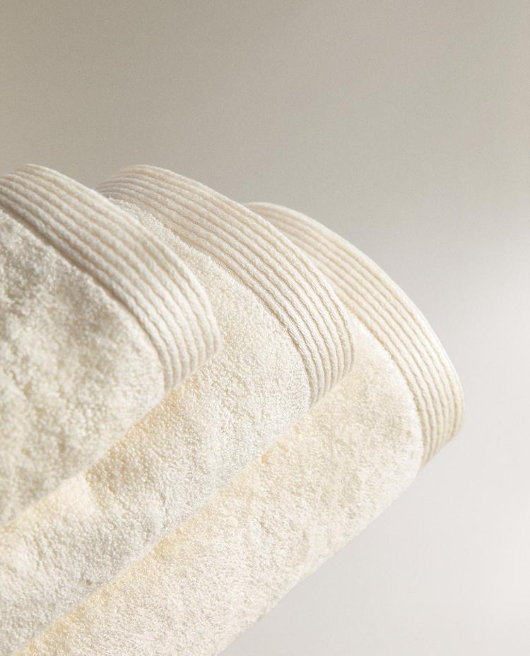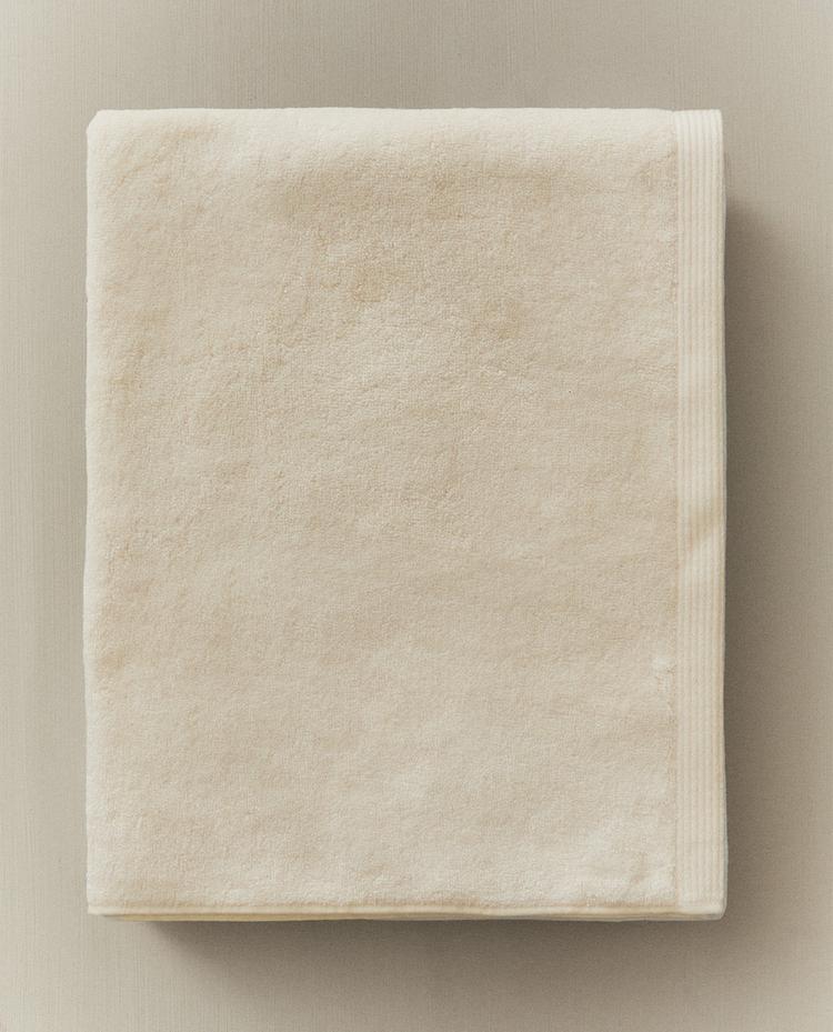 ZARA HOME ПОЛОТЕНЦЕ ИЗ СМЕСИ ХЛОПКА И ШЕЛКА С КАЙМОЙ, ЦВЕТ СЛОНОВОЙ КОСТИ