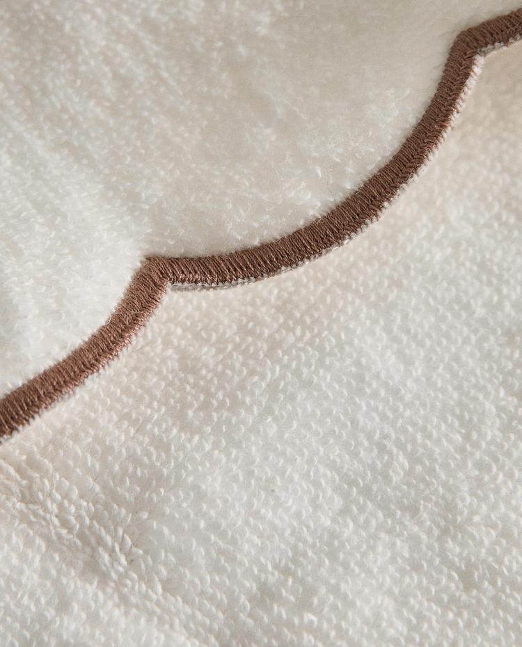 Полотенце для рук из хлопка с прямым краем сверху и волнистым краем снизу.