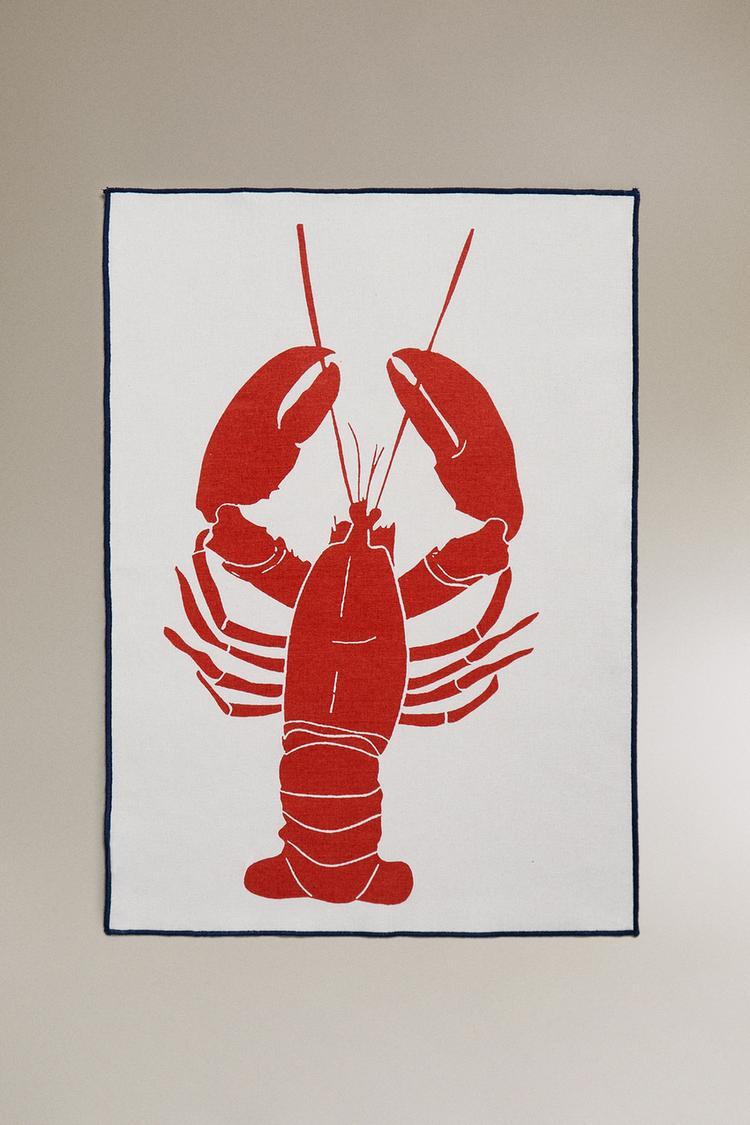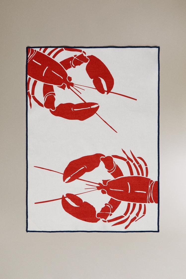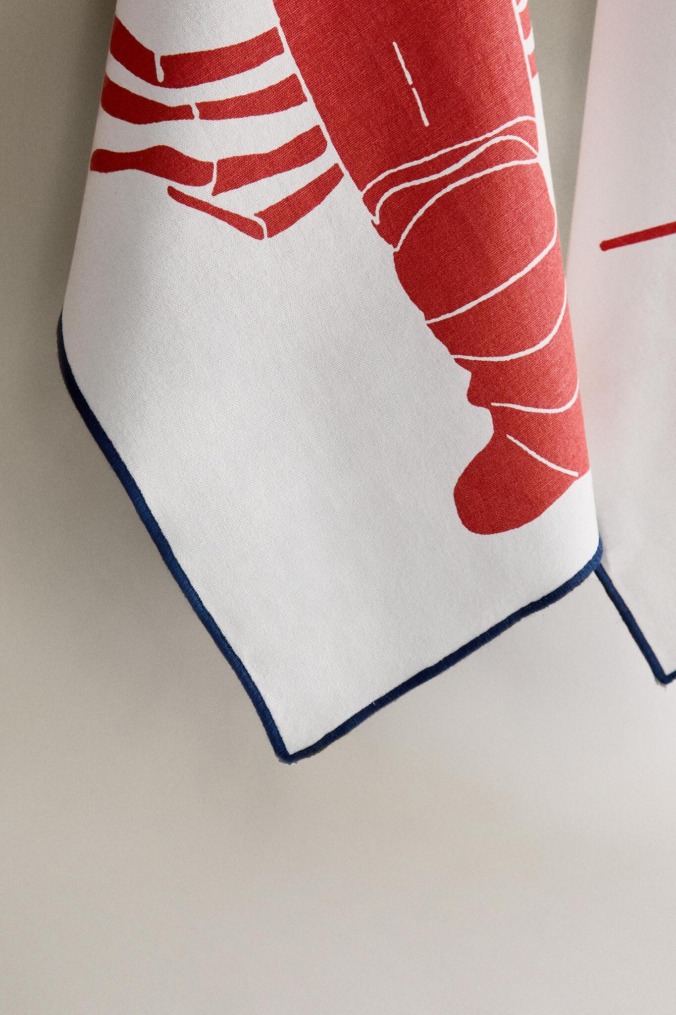 ZARA HOME ПОЛОТЕНЦЕ С РИСУНКОМ ОМАРА 2ШТ, СИНИЙ/БЕЛЫЙ