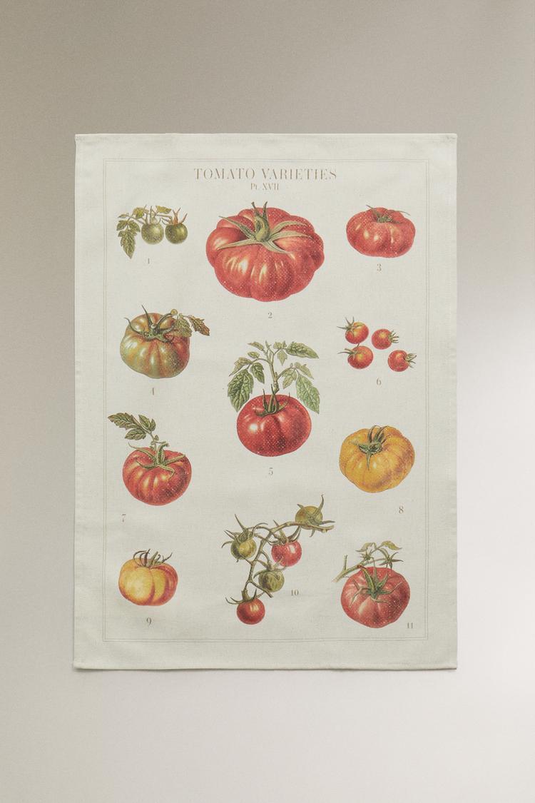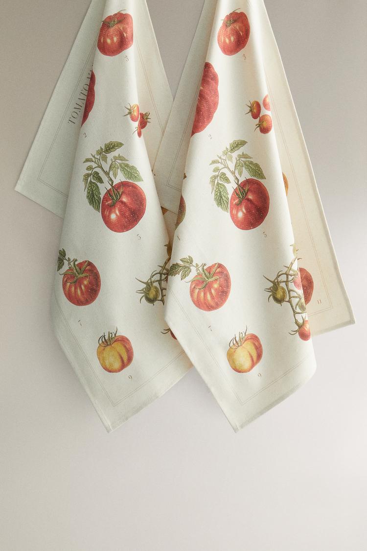 ZARA HOME ПОЛОТЕНЦЕ С РИСУНКОМ ТОМАТОВ 2ШТ, ЭКРЮ