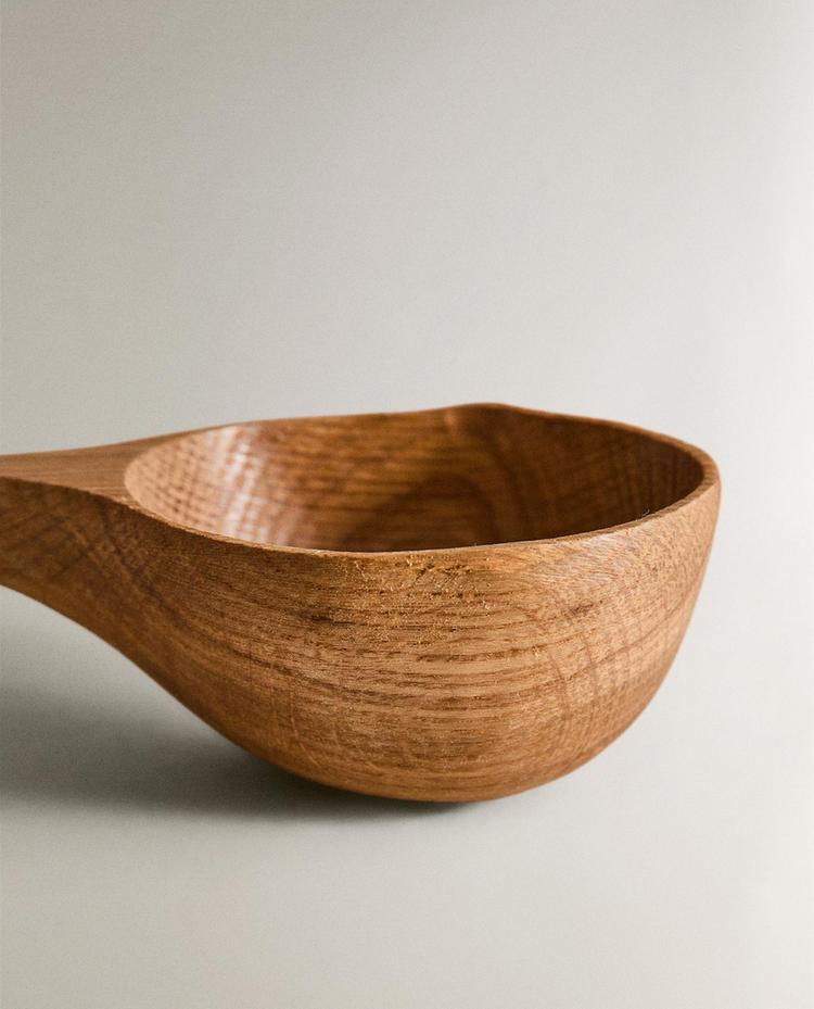 Кухонный половник из дуба с широкой и глубокой чашей, предназначенной для удобного и точного зачерпывания большого количества продукта.