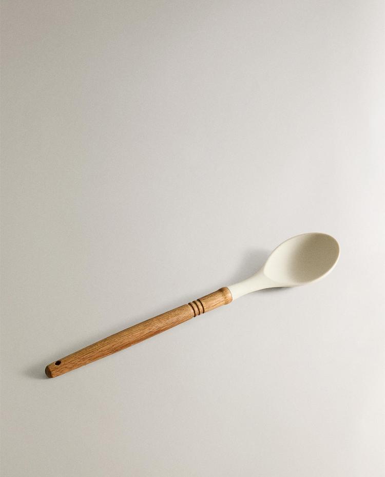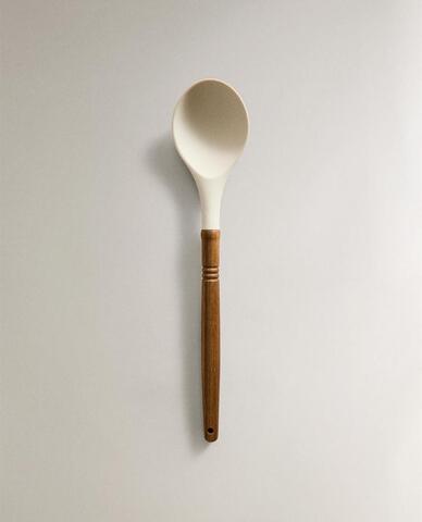 Силиконовый половник с ручкой из древесины акации. Не подходит для мытья в посудомоечной машине. Поскольку ручка изготовлена из натурального дерева, оттенок и фактура изделий могут отличаться. Для ухода рекомендуется обрабатывать дерево растительным маслом.