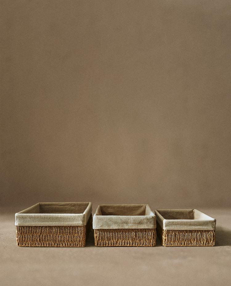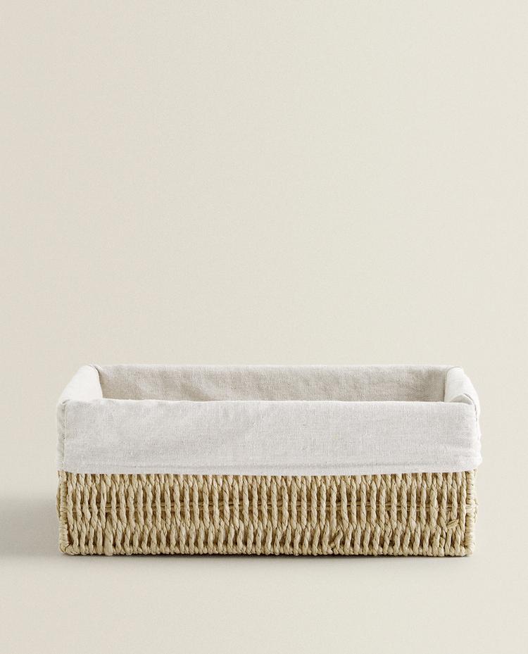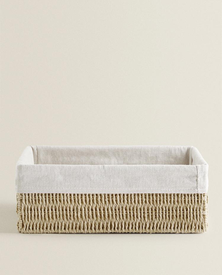 ZARA HOME ПРЯМОУГОЛЬНАЯ КОРЗИНА С ТКАНЕВОЙ ВНУТРЕННЕЙ ОБИВКОЙ, СВЕТЛО-БЕЖЕВЫЙ