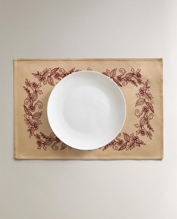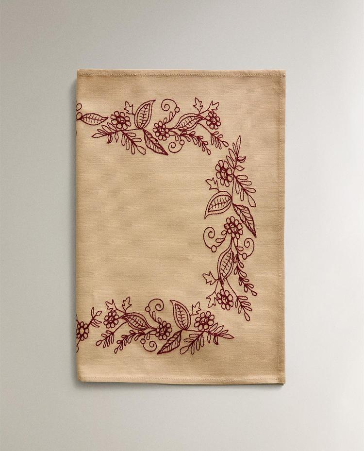 ZARA HOME РОЖДЕСТВЕНСКАЯ САЛФЕТКА С ВЫШИВКОЙ, КРАСНЫЙ