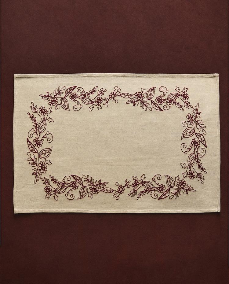 Хлопковый рождественский коврик с вышитыми переплетенными ветками и листьями, образующими декоративную каёмку.