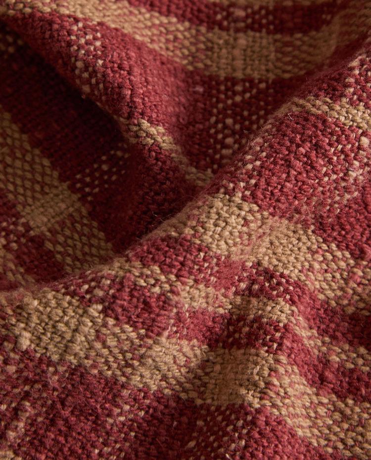 Рождественская скатерть из хлопка с переплетенным клетчатым узором и бахромой по краям.