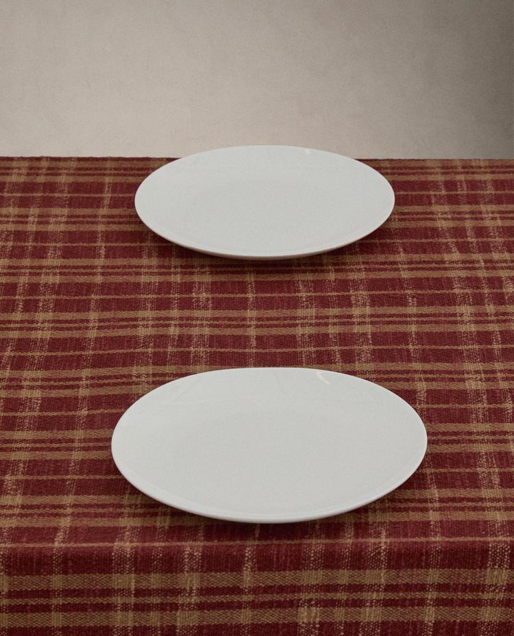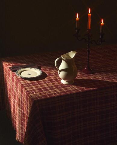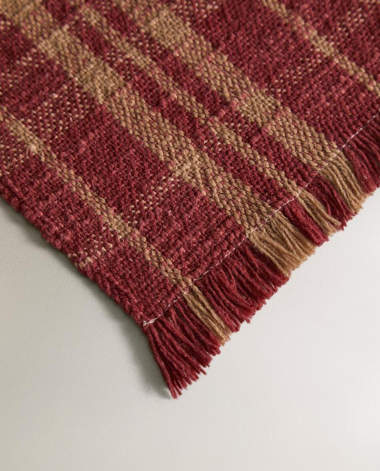 ZARA HOME РОЖДЕСТВЕНСКАЯ СКАТЕРТЬ ИЗ ХЛОПКА В КЛЕТКУ С БАХРОМОЙ, ЭКРЮ/КРАСНЫЙ