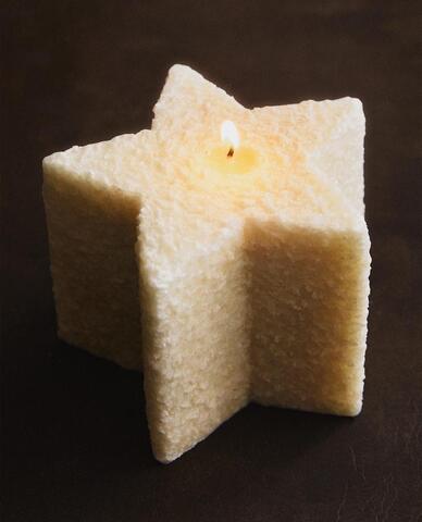 Декоративная рождественская восковая свеча в форме звезды с эффектом снега.