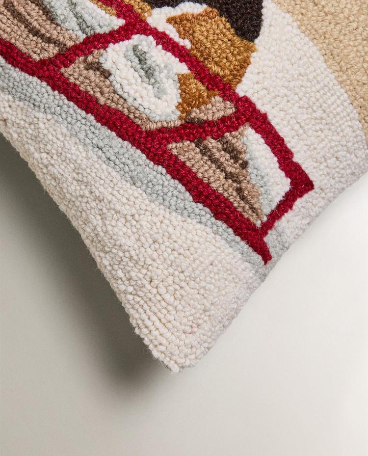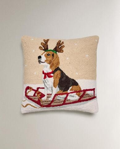 ZARA HOME РОЖДЕСТВЕНСКИЙ ЧЕХОЛ НА ПОДУШКУ С ВЫШИВКОЙ "СОБАКА НА САНЯХ", ЭКРЮ