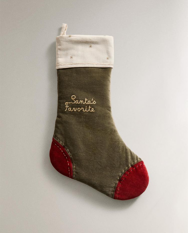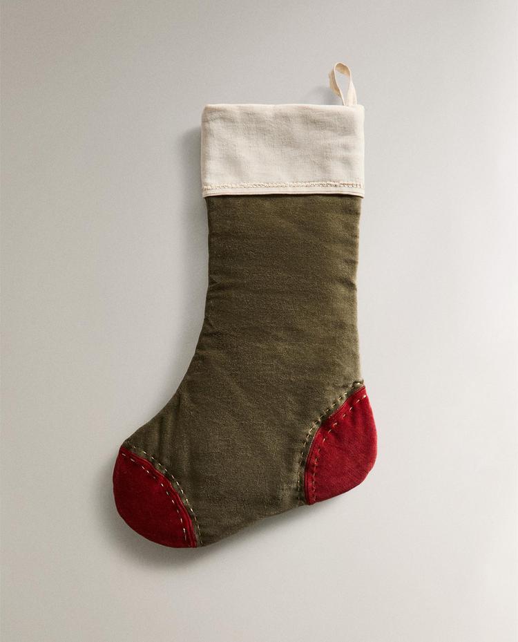 ZARA HOME РОЖДЕСТВЕНСКИЙ НОСОК ИЗ БАРХАТА, ЗЕЛЕНЫЙ