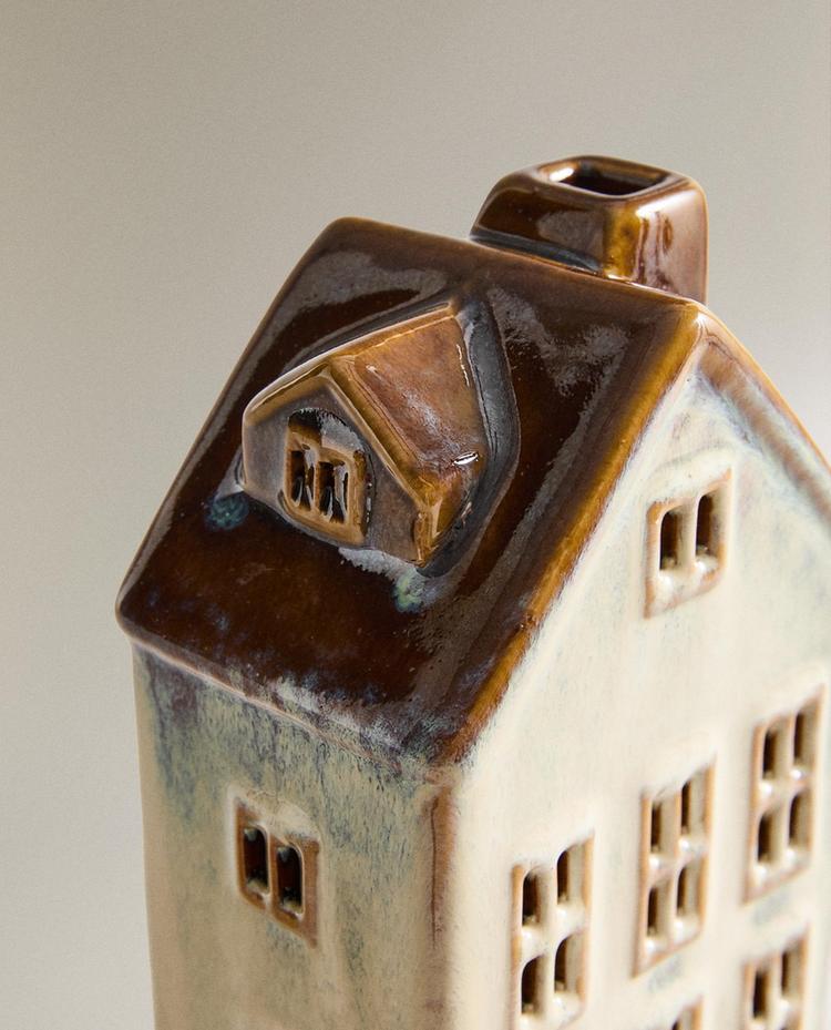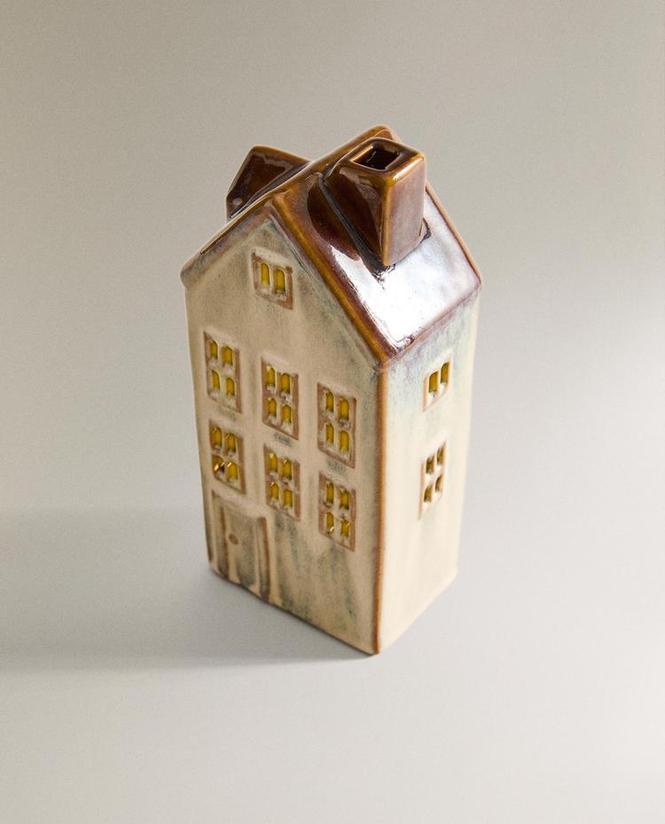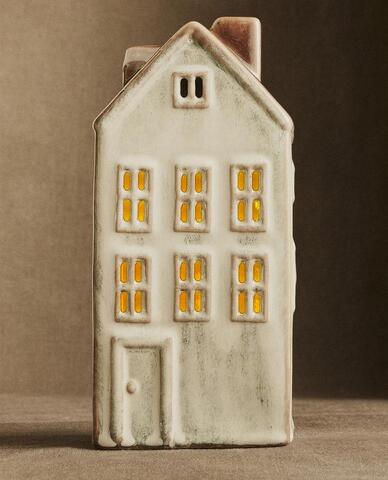ZARA HOME РОЖДЕСТВЕНСКОЕ УКРАШЕНИЕ «ФАРФОРНЫЙ ДОМИК» С ПОДСВЕТКОЙ, КОРИЧНЕВЫЙ