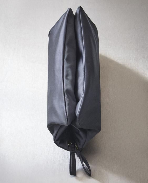 Сатиновая косметичка в виде держателя для предметов. Имеет два кармана на молнии.