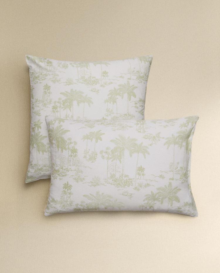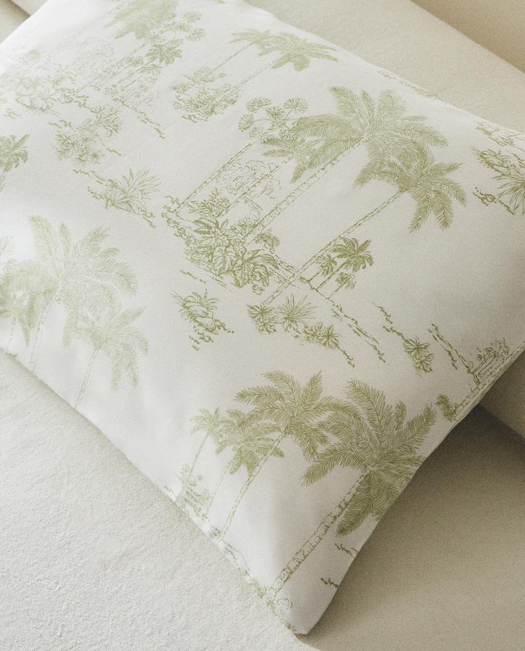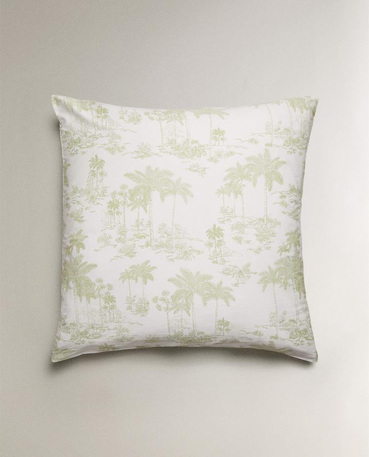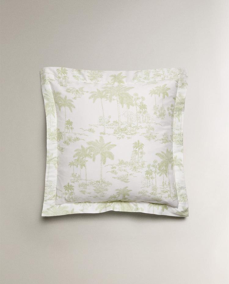 ZARA HOME САТИНОВАЯ НАВОЛОЧКА ПРИНТОМ, ЗЕЛЕНЫЙ
