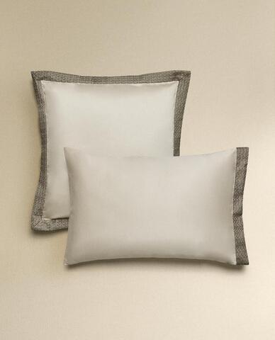 ZARA HOME САТИНОВАЯ НАВОЛОЧКА С ВЫШИВКОЙ, БЕЖЕВЫЙ