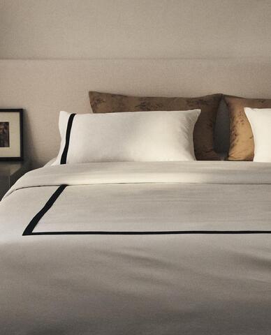 ZARA HOME САТИНОВЫЙ ПОДОДЕЯЛЬНИК С КАЙМОЙ, ЧЕРНЫЙ