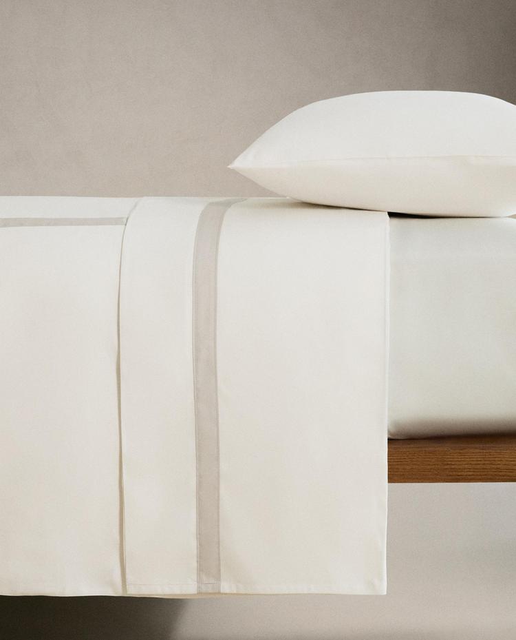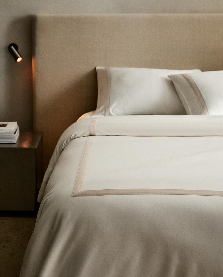 Пододеяльник из хлопкового сатина плотностью 300 нитей на дюйм с контрастной каймой.