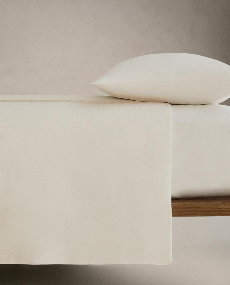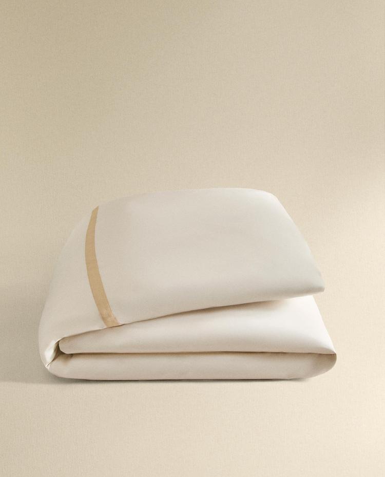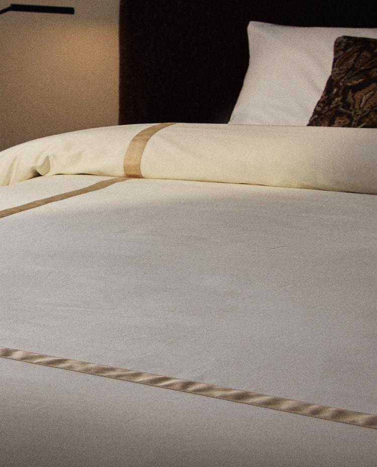 ZARA HOME САТИНОВЫЙ ПОДОДЕЯЛЬНИК С КАЙМОЙ, ЗОЛОТИСТЫЙ