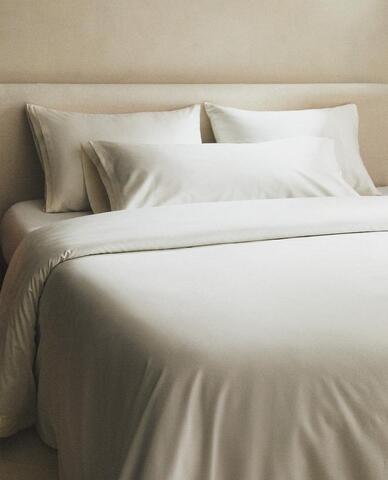 ZARA HOME САТИНОВЫЙ ПОДОДЕЯЛЬНИК С ШЕЛКОВОЙ КАЙМОЙ, ЖЕЛТОВАТО-БЕЛЫЙ