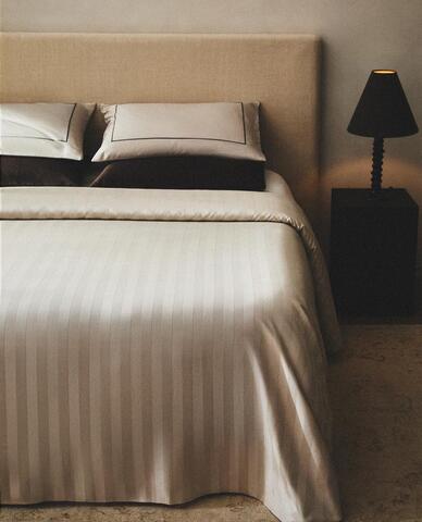 ZARA HOME САТИНОВЫЙ ПОДОДЕЯЛЬНИК В ПОЛОСКУ, СЕРЫЙ
