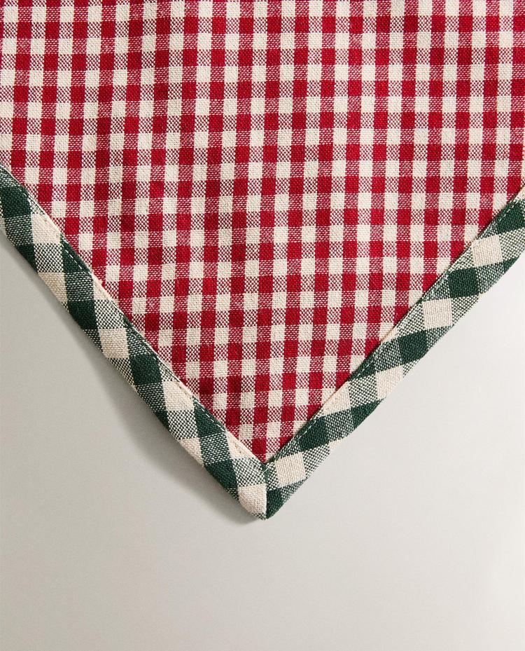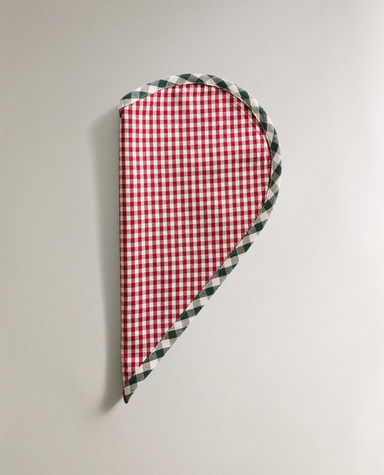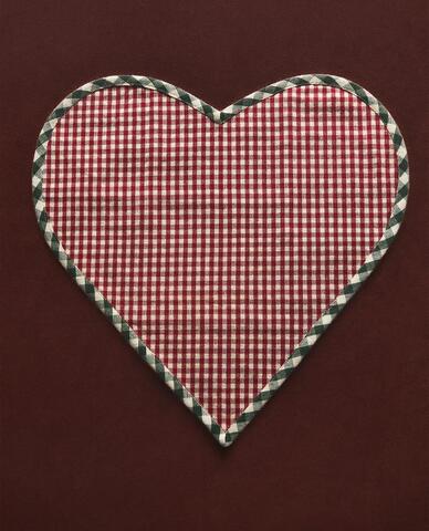 Новогодняя сервировочная салфетка в форме сердечка из хлопка с принтом в клетку. Контрастная кайма.