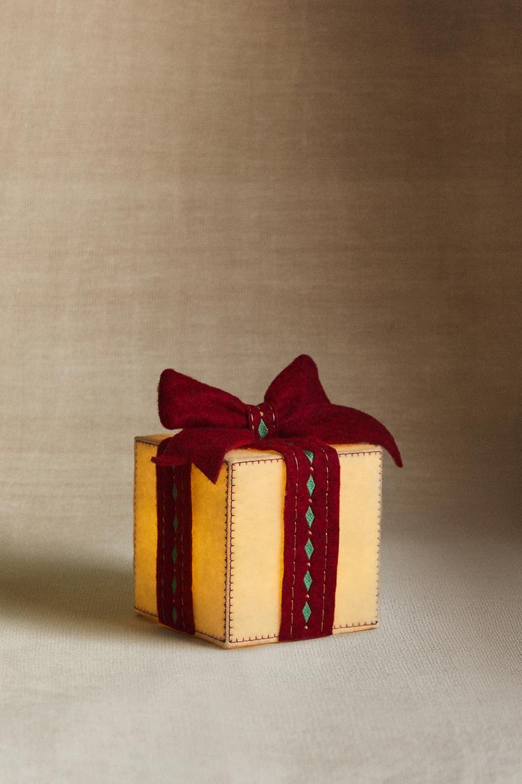 ZARA HOME СРЕДНИЙ СВЕТЯЩИЙСЯ НАПОЛЬНЫЙ РОЖДЕСТВЕНСКИЙ ПОДАРОК, ЖЕЛТОВАТО-БЕЛЫЙ
