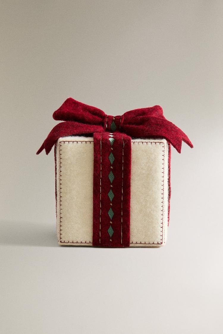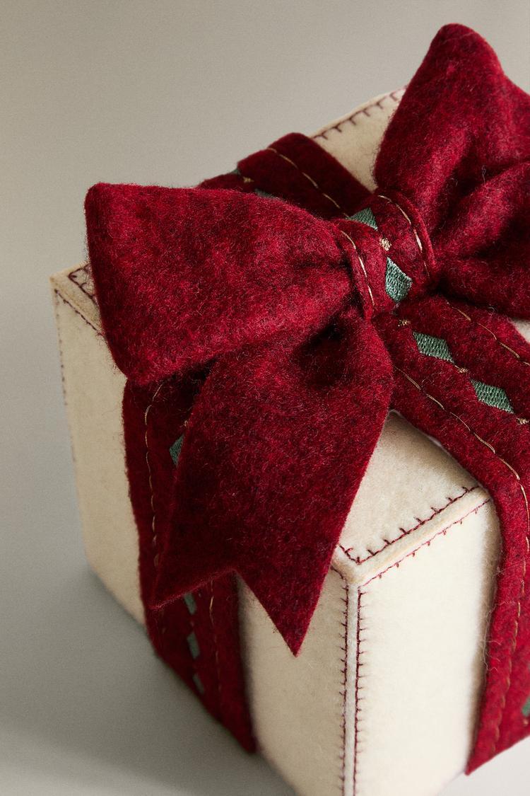 Рождественское подарочное украшение из шерсти со светящейся лампочкой внутри.