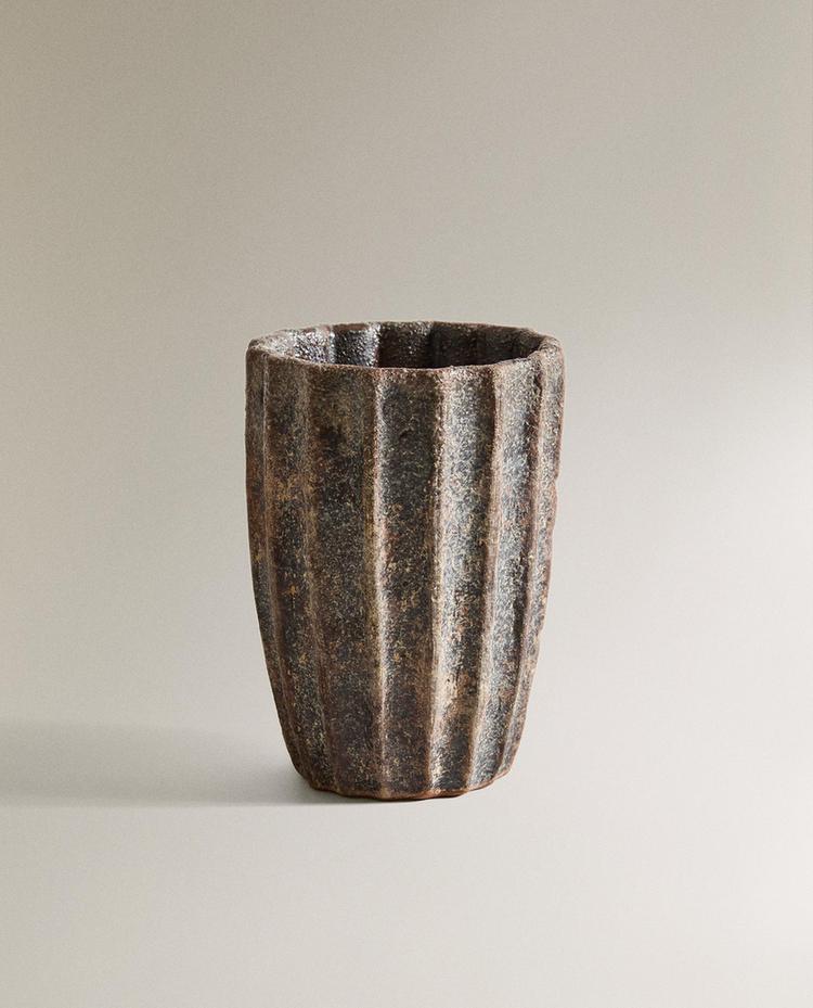 ZARA HOME СТАКАН ДЛЯ ЗУБНЫХ ЩЕТОК С РЕЛЬЕФНЫМ УЗОРОМ, КОРИЧНЕВЫЙ
