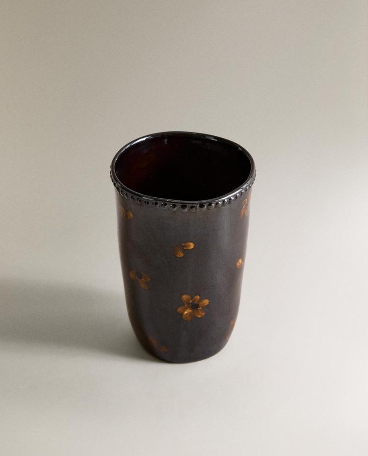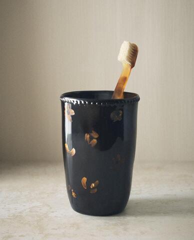 ZARA HOME СТАКАН ДЛЯ ЗУБНЫХ ЩЕТОК С ЦВЕТОЧНЫМ УЗОРОМ, КОРИЧНЕВЫЙ