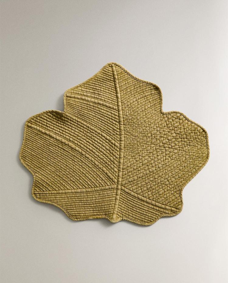 ZARA HOME СТЕГАНАЯ ПОДСТАВКА ПОД СТОЛОВЫЕ ПРИБОРЫ «ЛИСТЬЯ», ЗЕЛЕНЫЙ