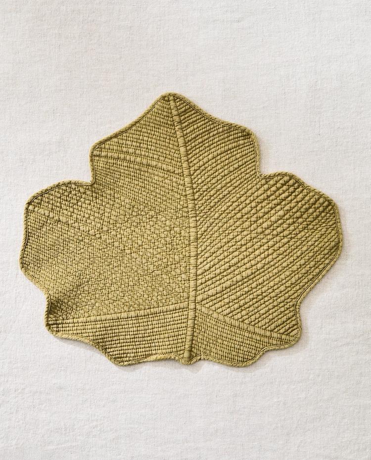Стеганая подставка под столовые приборы в форме листа.