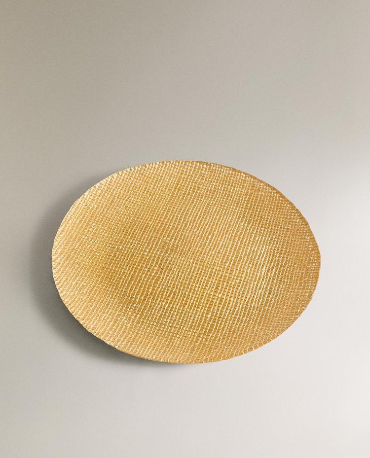 ZARA HOME СТЕКЛЯННАЯ СЕРВИРОВОЧНАЯ ТАРЕЛКА, ЗОЛОТОЙ