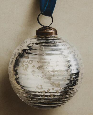 ZARA HOME СТЕКЛЯННОЕ УКРАШЕНИЕ ДЛЯ РОЖДЕСТВЕНСКОЙ ЕЛКИ В ФОРМЕ ШАРА, СЕРЕБРЯНЫЙ