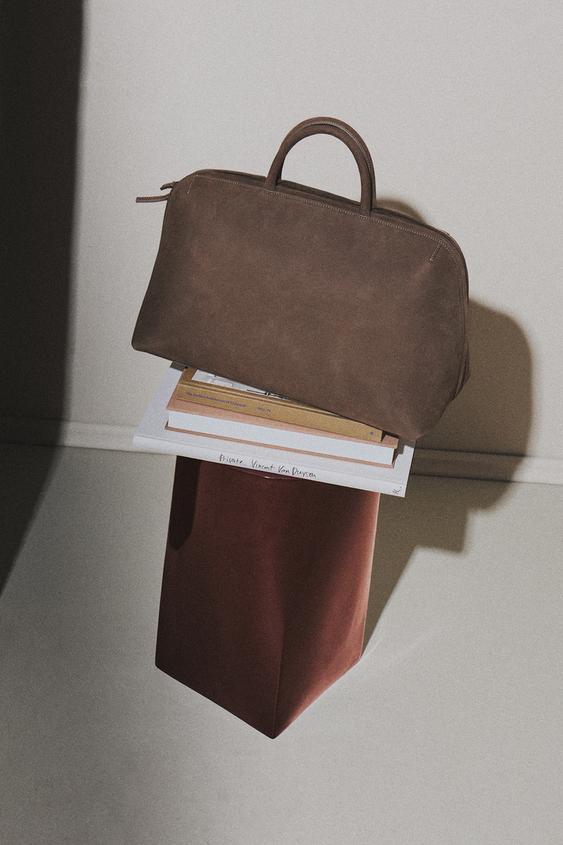 ZARA HOME СУМКА ИЗ НУБУКОВОЙ КОЖИ, КОРИЧНЕВЫЙ